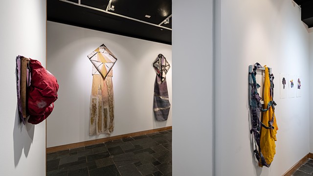 'Spring Dreams, Related' Ink, acrylic, canvas, thread, velcro 15.3 x 13.3 x 1 inches